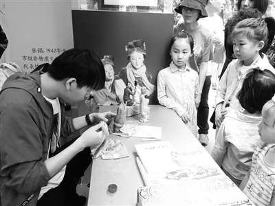 “这个是宫灯,是咱们中国彩灯中最富有特色的传统手工艺品之一……”一位抱着孩子的年轻妈妈跟宝宝说。在非遗展示区,展览以“非遗文化的传承与创新”为主线,通过世界非遗、国家非遗、京味非遗三个展区展现非遗魅力、弘扬非遗文化、激发非遗创新。