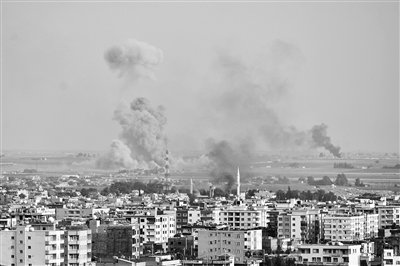 土耳其军方12日说,已经夺取叙利亚东北部边境城市拉斯艾因。这是土军9日开始进攻叙利亚库尔德武装控制区以来夺取的首座城镇,但库尔德武装否认这座城市沦陷。图为10月11日在土耳其边境的杰伊兰珀纳尔拍摄的遭到土军炮击的叙利亚边境城市拉斯艾因。 新华社发
