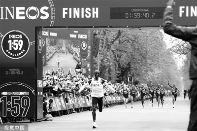 1小时59分40秒,在奥地利首都维也纳举行的这场“Ineos 1:59”挑战赛中,基普乔格得偿夙愿,用不到2小时的时间,征服了42.195公里的距离。