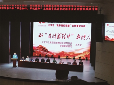 “简单的事情重复做,重复的事情认真做,认真的事情创新做,这才是新时代的劳动模范!”10月14日,本市第二批“不忘初心、牢记使命”主题教育先进事迹报告会暨东城区专场在东城少年宫启动,全国劳动模范、北京环卫集团抽粪车驾驶员孙志宝对传承劳模精神在会上做出掷地有声的答复。当天的报告会分为红色京华、激情岁月、春天的故事和唱响新时代四个篇章,来自首都各条战线的8名宣讲员先后作报告。(相关报道详见第5版)
