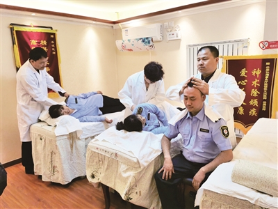 昨天下午,在岳康弘盲人按摩店,公交司机免费享受了一次专业的按摩。10月15日是第36届“国际盲人节”。为展示盲人自强不息的精神风貌和专业高超的劳动技能,本市55家盲人保健按摩机构向一直以来在出行中给予盲人群体特别帮助的公交系统工作人员提供爱心按摩服务,活动将持续三个月。同时,55家盲人按摩店将向本市公交系统的两万余名工作人员发放爱心卡,并为持有爱心卡人员每人提供30分钟的免费按摩服务。