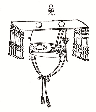 从明朝百科式图录类书《三才图会》中可以看到,刘邦继承了秦代的服装制度,所以西汉皇帝没有一位在画像中是戴冕的。其他史料也表明,在西汉出现了刘邦喜欢的刘氏冠(见图3),由樊哙得名的樊哙冠(见图4),以及委貌冠、进贤冠、建华冠、方山冠、巧士冠、却敌冠等多种头衣首服。