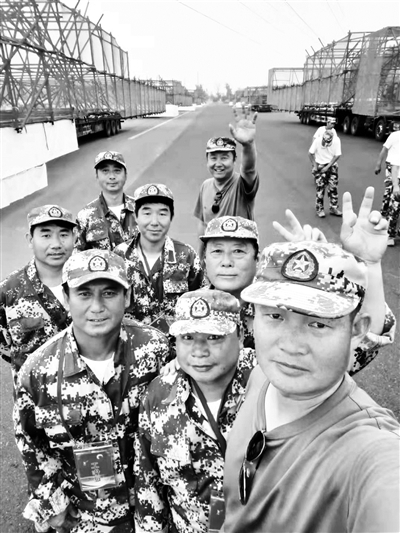 艰苦的军训过后,大家迎来了艰难的驾驶实操练习及考核阶段。他们模拟练习驾驶的福田大货车正是国庆当天的同型号车。模拟车全长30米、宽7米,比国庆彩车长出15米——如同在驾驶一辆双层的三箱公交车,驾驶难度系数只会更高。
