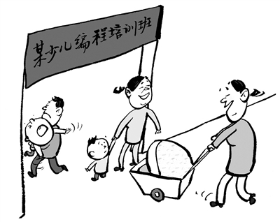 “未来的文盲,就是现在不懂编程的小孩”“不会写代码就丧失了网络生存能力”……近来,大量引发家长焦虑感的少儿编程广告,充斥于自媒体和公共场所。继奥数、英语之后,少儿编程成为最新教育培训热点。少儿编程如此火爆,谁是幕后推手?家长是否应该让孩子学编程?(11月7日《北京青年报》)□王铎