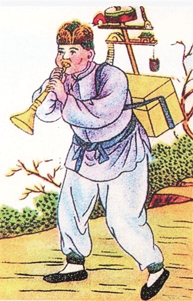 这种“吟叫”到明清时已是一种通俗的商品宣传方式。如在清末的北京街头,叫卖声被称为“京叫”。清佚名《燕京杂记》记载:“京师荷担卖物者,每曼声婉转,动人听闻。”而且分贝很高:“呼卖物者,高唱入云。”清闲园鞠农还专门将各种市声辑撰于《燕市货声》一书,如耍耗子的“鸣锣或吹唢呐”;磨刀磨剪子的则“分数种,有吹喇叭者,有打铁链者”。