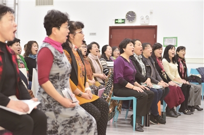 合唱团的另一位团长尹丽萍介绍,新团员入团要进行筛选,“从声音、形象上,我们要面试一下。虽然我们不是专业团队,但是我们希望这支合唱团能体现出专业的水平。”副团长赵增利介绍,合唱团目前发展稳定,在新团员年龄上也有所限制。“第一声音、形象要好。第二年龄上,原则上不超过60岁。如果个人条件特别优秀的,年龄可以放宽到65岁。”