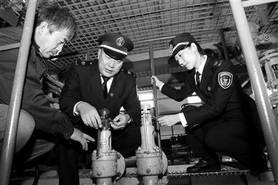 上周,东城区市场监管局执法人员来到了热力集团东城分公司朝阳门中心十字坡服务站新兴里锅炉房开展现场检查。执法人员检查了公司管理机构、管理人员及制度落实情况,查看了设备的使用登记证和相关人员的操作证等。同时还对2台锅炉安装的安全附件与检验报告进行现场一一确认。本报记者 彭程 摄影报道