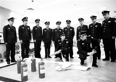 19日晚,海淀保安分公司驻工行海淀西区支行保安队组织消防培训活动,着重对银行内的消防栓、灭火器的性能和使用方法进行现场演示,并采取教员讲解与全员进行实际操作、老兵教新兵的办法,使保安员熟练掌握消防栓和消防器的正确使用方法。