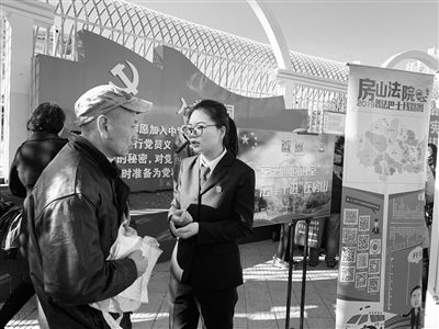 在第六个国家宪法日当天,房山法院燕山人民法庭联合星城司法所开展“京法巡回讲堂”普法进社区活动,为星城社区的社区居民共发放“人民调解”“扫黑除恶”宣传折页300余册,并解答居民咨询赡养、分家析产、借贷等法律问题。