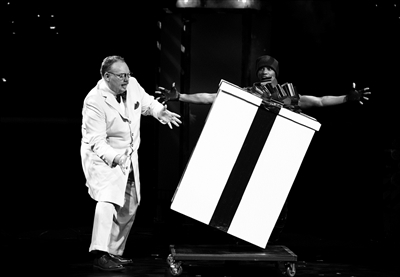 12月3日,在美国纽约,魔术师凯文·詹姆斯(左)在“魔术师——假日魔法”媒体秀上表演。2019年11月29日至2020年1月5日,巡回魔术秀“魔术师——假日魔法”登陆纽约百老汇,为观众带来精彩纷呈的魔术表演。新华社发