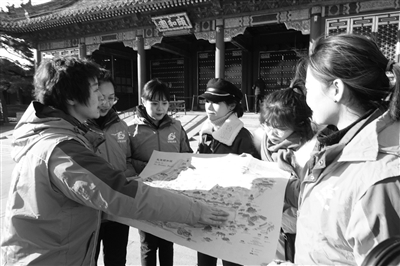 “知春亭北以万寿山为屏,南面朝阳,当园中其它建筑还在晚冬的寂静中沉睡时,这里早已绿上枝头春意闹了。”国际志愿者日到来之际,昨天,颐和园园林志愿者为来园的中外游客进行义务讲解,讲解员赵元萍和张涵以知春亭为开场白,让游客感到浓浓暖意。