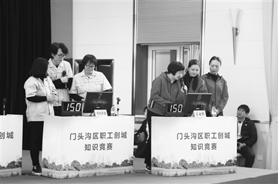 此次竞赛知识范围涉及习近平新时代中国特色社会主义思想、党的十九届四中全会精神、创建文明城区知识、门头沟区情、工会知识以及市民文明礼仪等内容。经过层层选拔,47支代表队以笔试的方式进行了初赛,最终选拔8支代表队进入决赛。