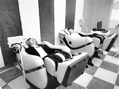 “减压室是一个开放的智能服务平台,各种特色心理减压方法都有,比如有个特别好玩儿的,我们每次去,把一个类似于头箍的设备戴在脑袋上,屏幕上的荷花紧紧闭着,当你闭上眼,什么都不想,让自己完全放松,荷花就慢慢的、一点点开放,直到开到最大,这个时候你全身都是放松的。”公共服务管理岗的职工李慧娟跟记者分享着。