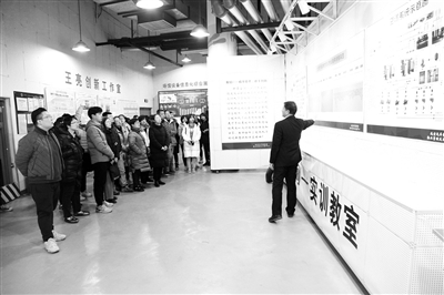 “成立职工创新工作室,最初的目的是为了磨砺技术技能,为博物馆提供高水平的服务保障。”说到创新工作室,汽车博物馆运行保障部部长王亮的话匣子打开了:“对于企业来说,技术培训是个难题,很多抽象化的内容没有培训实物,新员工很难很快上手。”于是王亮和引入的物业公司员工一起,利用地下空间一处闲置的角落巧妙改造,开辟出一个“折叠空间”,用5米高的折叠移动隔板,建成创新实训工作室。工作室内部搭建数块实训模板,都是工程师利用平时场馆维修拆除的废旧材料和零配件,结合场馆各系统的实际情况组装而成,建成后用于新员工培训、标准化现场教学,生动直观。