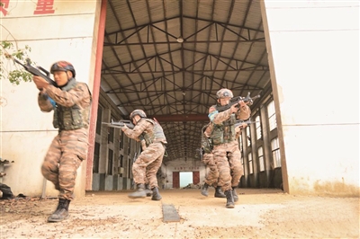 近日,武警湖北总队鄂东片区特战分队第四季度“魔鬼周”极限训练拉开序幕。本次训练紧贴实战,设置按图行进、山地追逃、河道搜索、爆炸物搜索、红蓝对抗等课目,特战队员辗转工厂山林,穿越水坝沼泽,在复杂地形和环境中挑战极限,锻造过硬本领。图为厂区战斗搜索训练。
