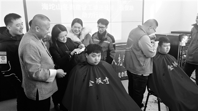 “嘿,小王,剪完头都快认不出你了,精神多了。”延庆区张山营镇总工会志愿服务大队定期深入到各冬奥工地,为一线建设者提供免费理发、健康义诊、日常用品送货上门在内等多项志愿服务。