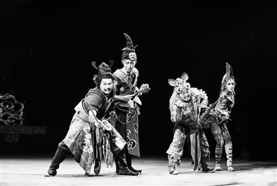 全剧充满天马星空的艺术想象力,舞美设计将东方文化审美的内容进行了打破常态的展示:老虎是四块拼成的,山神是有大有小的,松树是可分可合的,龙舟是当场翻转的,鸡和狗是可以与人共舞的……