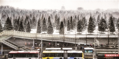 为了迎接这场大雪,本市环卫、公交、地铁以及交管部门的职工严阵以待,他们在雪中坚守岗位,及时清扫道路,清除景点积雪,疏导交通,保证了市民的正常出行。