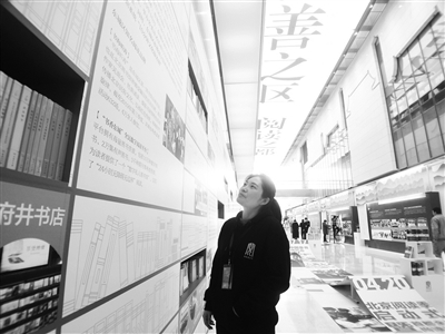 站在天桥艺术中心,就像是走进了一个巨大的立体阅读空间,“阅读盛典”等题目在天花板上的大屏幕滚动呈现,十分醒目。屏幕下方,是以“70年 读北京 读中国”为主题的“书香长廊”,右侧的“红墙”则是2019年北京阅读季品牌活动成就展;左侧,北京16+1区“一区一品”阅读漫游地图被做成了书架的形态,摆放了社科、文学、儿童等各类书籍,观众在阅览各区特色的同时,随手便可阅读书籍;中间的2019北京阅读季全民阅读大事记,以平面与立体交错的白色条幅形式,图文并茂地展示了北京阅读季自4月20日启动以来,经历的图博会、北京十月文学月等重要节点;而书香运河则以一幅长卷,将20个运河沿岸城市举办的22场阅读推广活动做成了一张鲜活的文化名片。
