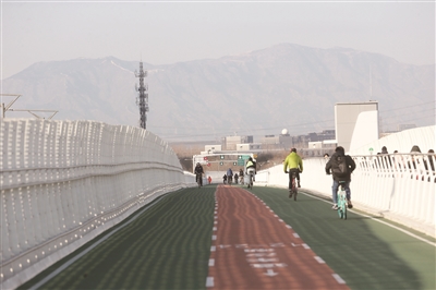 昨天上午,市民骑行在回龙观至上地软件园自行车专用路上。自行车专用路开通以来,累计通行突破100万人次,日均通行量为4975人次。(相关报道详见第3版)