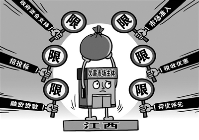 记者从江西省市场监督管理局获悉,为打击欠薪市场主体,保障农民工劳动报酬权益,江西将对欠薪市场主体实行联合惩戒,使欠薪市场主体一处失信,处处受限。(12月18日新华社)□朱慧卿