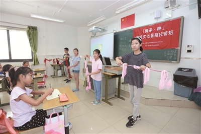 有的托管班将课程设置与当前重点工作相结合,例如六里屯街道总工会围绕当前热点的垃圾分类工作,给孩子们讲授垃圾分类的方式方法和环保知识,做到爱护环境,从娃娃抓起。还有的托管班将课程内容与青少年暑期思想政治教育相结合。东风地区总工会就联合科教文体办公室,在托管班里讲解急救知识、消防安全常识等内容,把科普做到孩子身边,全方位、多层次启迪孩子们的心灵。