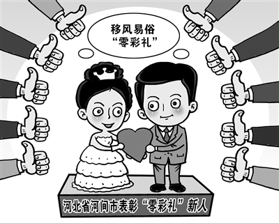 20日上午,河北省河间市兴村乡大庄村的石卫媛没有像往常一样去玻璃厂上班,他换上正装,和新婚妻子张维早早地乘车赶往河间市国欣宾馆。日前,他们收到了河间市文明办发来的邀请函,作为“零彩礼”新人的典型代表,和另外的188对新人一起接受表彰。(12月21日新华社)□朱慧卿