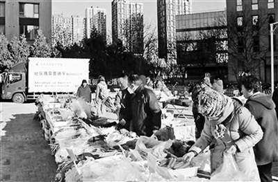 近日,北京来广营地区的广达路社区小广场来了一辆“蔬菜直通车”,解决了广达路社区居民买菜的大问题。橘子、香蕉、西红柿、白菜……在广达路社区的早市上,记者看到日常食用的水果、蔬菜一应俱全。(12月23日《北京青年报》)
