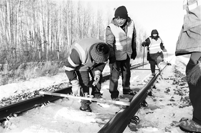 “我们的工作,就是给铁轨‘体检’,做整体冻害检查,看两条铁轨的横纵两个断面位置是否符合标准。”黄福和指着铁轨说,发现问题,就要通过铺设垫片等方式将铁轨调整好,“误差以毫米计算”。