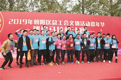 11月23日清晨,朝阳公园东5门内的广场上人声鼎沸,来自朝阳区各街道、地区、委办局和产业工会的500余名职工会员齐聚这里,以一场紧张有趣的迷你马拉松赛拉开了2019年朝阳区总工会文体活动嘉年华的序幕。