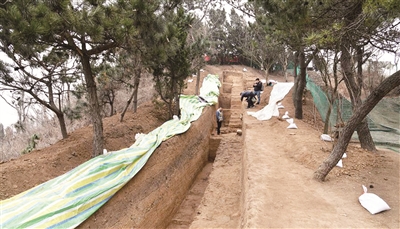 近日,山东省琅琊台遗址考古发掘取得新进展,台顶发现2000多年前秦汉时期大型夯土台基、排水系统和建筑基址,规模宏大,建筑工艺严谨,据此推测在台顶或许曾存在过一座规格较高的大型古建筑。 图为12月21日拍摄的琅琊台遗址考古发掘现场。