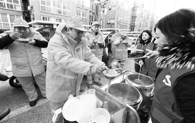 腊八节将至,为了让环卫工人能提前喝上热乎的腊八粥,顺义区胜利街道怡馨二社区党总支和初心学社的80余名党员们从凌晨4点半就忙活起来。红豆、花生、红枣、莲子……20多种食材,汇成了6大锅情意浓浓的暖心粥,更有几十名党员亲手做了200多瓶腊八蒜,捧到了正在街头巷尾清扫卫生的环卫工人手中,让大家提前喝上了腊八粥。