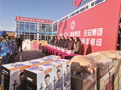 当天,市建筑工会、城建集团、住总集团领导为延庆冬奥村及山地新闻中心项目送来了慰问金及猪肉、保温杯、水果、食用油等职工最需要的慰问品,并叮嘱一线建设者做好防寒保暖,注意施工安全和防火安全。