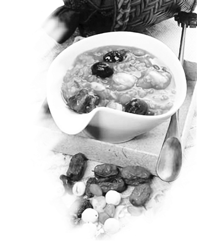 中青年人由于工作量、活动量大,对能量要求高。许多中年人应酬多,碳水化合物的来源越来越少,不符合《中国居民膳食指南》中粮谷类应占55%-65%的原则。所以,在腊八粥中不妨多放些富含碳水化合物的米类,也可适当多放些栗子、莲子等既富含淀粉又有一定保健作用的坚果。