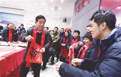 北京市人大常委会副主任、党组副书记,北京市总工会主席刘伟出席活动。他在致辞时指出,春节是中华民族最重要的传统节日,一副春联、一张“福”字、一个“福”包、一张“笑脸”,都是好彩头的寓意。此刻由中国书法家协会的艺术家们为大家现场书写春联、“福”字;市总工会为大家送“最美微笑”照片、送新春“福包”,就是想通过这样的活动,为大家送上新一年最美好的祝福,让大家在新春佳节之际把劳动收获的“微笑”带回家,把工会组织的温暖和关爱带回家。