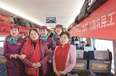 1月8日,在由北京西开往成都东的G307次“川籍农民工春节专列”上,乘务员和返乡农民工共同唱起《常回家看看》。当日,一列由北京开往成都的“川籍农民工春节专列”从北京西站开出,载着700余名川籍农民工及家属返乡过年。此公益活动面向川籍农民工聚集的北京、上海、福建、江苏、江西,共征集约2400名川籍农民工及家属,分别从这5省市免费载他们返乡过年。 新华社发