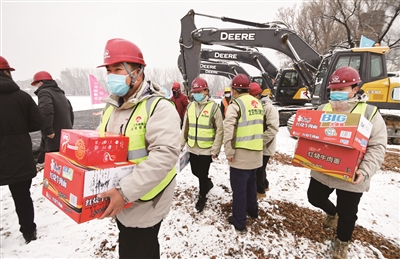 2月2日,北京市政路桥市政集团工会,将牛奶、火腿肠、方便面、八宝粥、香蕉、矿泉水、消毒液、湿纸巾等物资送到正在昼夜奋战修建小汤山医院的一线职工手中,为他们解决最直接、最迫切的生活问题。现场,有职工反映夜间在零下七八度的环境下施工十分寒冷,工会又火速定购50件军大衣送到项目部。此前,市政集团工会已第一时间向项目部拨付慰问金3万元。