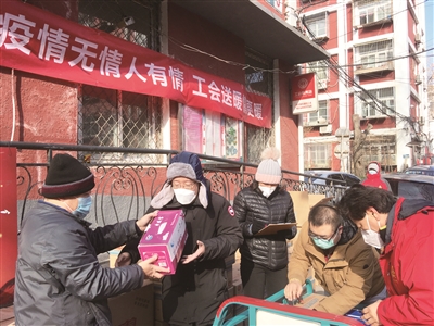 本报讯 (通讯员 杜丽颖) 3日上午,东城区和平里街道总工会在工会服务站举行“疫情无情人有情,工会送暖情更暖”慰问社区工作者活动。当天,200多个暖手宝发到一线职工的手里。