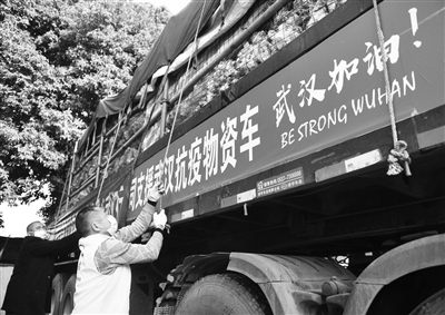 2月6日,运送蔬果的货车整装待发。当日,共载有300余吨蔬菜水果的17辆货车从四川省成都市蒲江县寿安镇出发前往武汉。据了解,这批蔬果的捐赠由公益组织发起,成都的20多家农业专合社、家庭农场、爱心团体和企业参与。新华社发