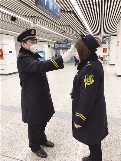 为了给乘客营造安全的乘车环境,根据部署,孙琪组织全站工作人员对公共区域每天定时消毒5次,对于经常触碰位置每小时消毒1次,安检设备每小时擦拭并消毒1次,自助售票设备、检票设备每小时擦拭并消毒1次,车站售票室每天分时段消毒5次……“在疫情面前,无论是乘客的安全,还是车站工作人员的安全,都不得出现任何闪失。”