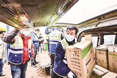 李飞是三公司火神山项目后勤保障、内外部总协调负责人。刚到项目时,现场一无所有,他要用最快速度做到应有尽有,从前期的板房搭建、物资储备,到施工期间千余份的用餐调配;每天百余辆物资车辆交通协调、捐赠物资及防疫物资管理、1000余人的防疫工作……他还是项目第三党支部的纪检委员,肩负项目后勤物资采购、防疫物资等管理工作监督。李飞最担心的两个问题,就是食品管理监督与防疫管理监督。让职工们吃好是后勤保障第一要务。现场1000多人的早中晚餐加宵夜,一天4000多份。为保证食材的新鲜,李飞和其他同事每天都要对食材的质量、重量进行抽查,抽查比例达到5-10%。