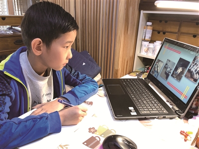 2月17日,朝阳区实验小学的学生正在收看学校的线上课堂。当天,北京市中小学和多所在京高校的学生在老师的指导下家中“开课”。(相关新闻详见第6版)