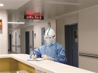 帽子、口罩、防护服、手套、护目镜、隔离衣和靴套……每天进入隔离病房前,马跃明都要“全副武装”。