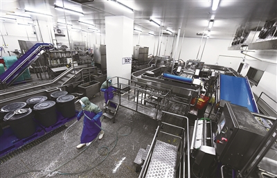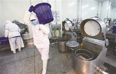 记者了解到,裕农公司原本以生产鲜切蔬果为主。我们在街头大型连锁餐饮企业吃到的蔬菜沙拉就来自这个企业。除此,他们还为很多企事业单位食堂提供新鲜蔬果产品。可谓北京果蔬市场供应的生力军。