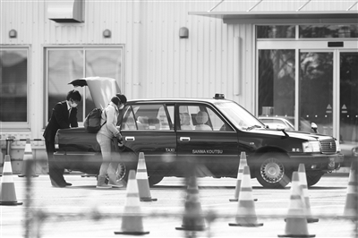 2月19日,停靠在日本横滨港的“钻石公主”号邮轮上人员隔离期满,检测结果为阴性的乘客陆续下船回家。图为一名“钻石公主”号邮轮乘客(右)下船后乘坐出租车准备离开。 新华社发