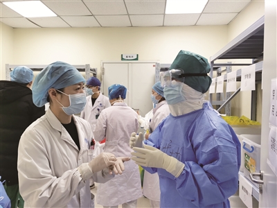 9点钟,我和同事们走进隔离区。今天这里有47名病患,每个人都需要量体温、打点滴、发药……穿着笨拙的防护服,我经常感觉气闷。
