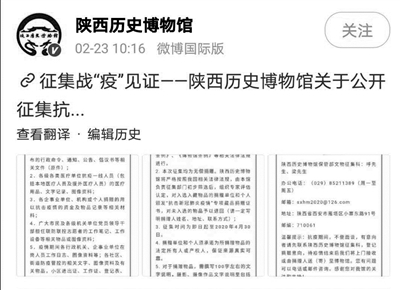 近日,上海、天津、陕西、浙江、四川、云南、江西、广东等多地博物馆公开征集与抗击疫情有关的各种物证,征集范围包括请战书、倡议书、捐赠凭证、工作日志、小区进出证、登记表、测温仪、宣传横幅、摄影摄像作品、书法绘画作品等等,捐赠方式为免费捐赠,对入选物品的捐赠单位和个人颁发捐赠证书,未入选物品将原物退还。(2月23日 中新网)