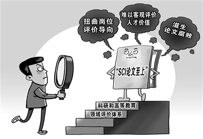 近日,教育部、科技部发文要求破除科研和高等教育领域评价体系“SCI论文至上”风,规范SCI论文相关指标在科技评价、职称评聘等重要领域的使用,措施包括不把SCI论文相关指标作为职称评聘的直接依据以及作为人员聘用的前置条件等。(2月26日 新华网)□朱慧卿