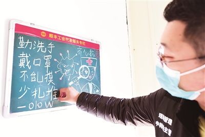 顺丰华北分拨区顺航路中转场目前有300多名员工。“快递员工与快件直接接触,保障好快递员工的健康安全,就是保障广大收件市民的健康安全。”该中心成立以负责人为组长的疫情处理小组,下设防控应急小组及防疫检查小组。防控应急小组处理突发情况,对于出现体温异常、气短、憋喘等现象人员及时记录、上报、隔离处理。防疫检查小组工作职责对进入场地内部人员进行体温排查。对场地内部进行早、中、晚消毒处理,确保工作环境卫生。同时,通过微信、公众号等媒介,对数百名员工介绍新型冠状病毒成因,传播载体等进行宣传科普,引导员工做好各项防范措施。一位快递员告诉记者:我们最朴素的想法就是让我们多跑路,让客户少出门。我们多一份付出,市民就多一份安全。
