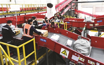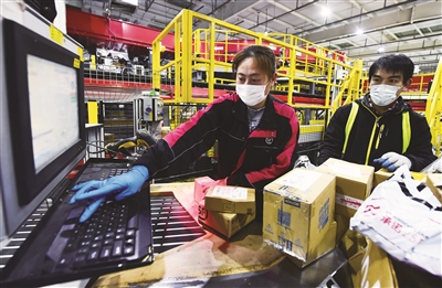 3月10日,记者来到顺丰华北分拨区顺航路中转场,在负责人刘显明的带领下,记者看到在中转场办公楼入口设立“防疫检查站”,配备了体温计、护目眼镜、口罩、酒精、医用手套等。所有返岗或进入场地的内部人员,需在“防疫检查站”进行体温测量,并进行登记。上午10点,中转场里刚到一趟航班的快件,卸车后,经消毒设备的喷淋后,洗消完的所有快件就上了自动化分拣设备,他们都要经过扫描实现条码识别。然后由中央分拣系统进行分拣派送,让各自不同的快件按照不同的目的地,流向它们该去的地方。